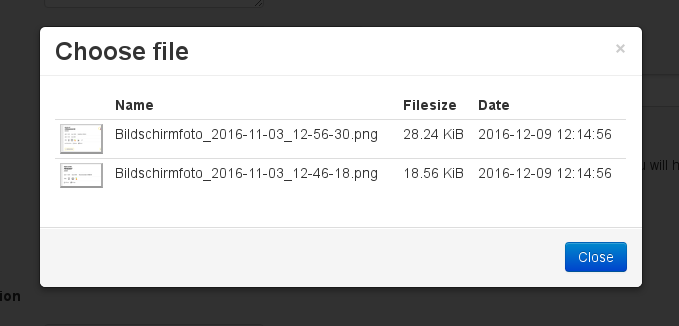 Dialog for choosing a file from the drop folder
