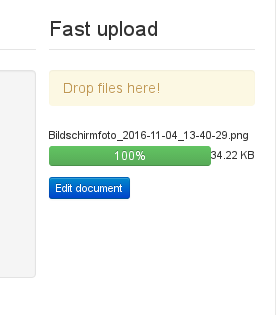 After successful upload, a button with a link to the Edit document page will be shown.