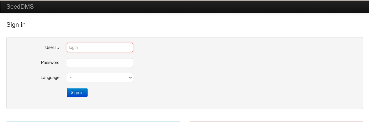Besides the login name and your password, you can also set the language which will be saved and remembered when you login the next time. At the time of writing SeedDMS supports more than 20 languages.