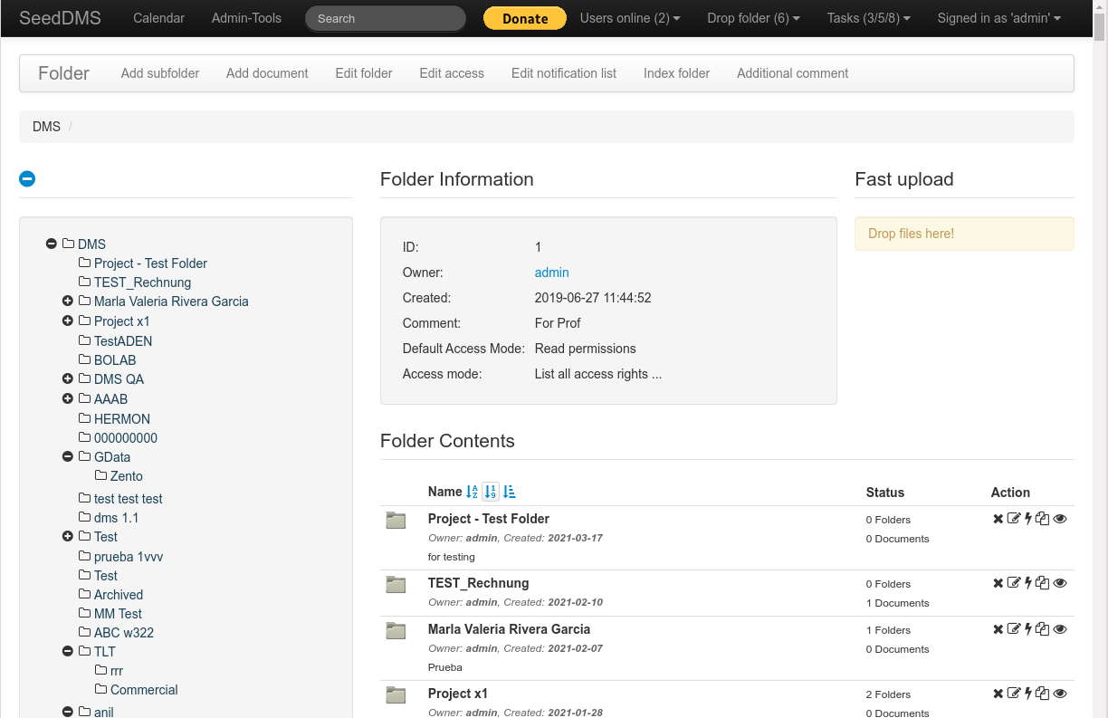 This page looks like a regular file system manager and actually SeedDMS works like one in many aspects, which makes it quite familar to use.